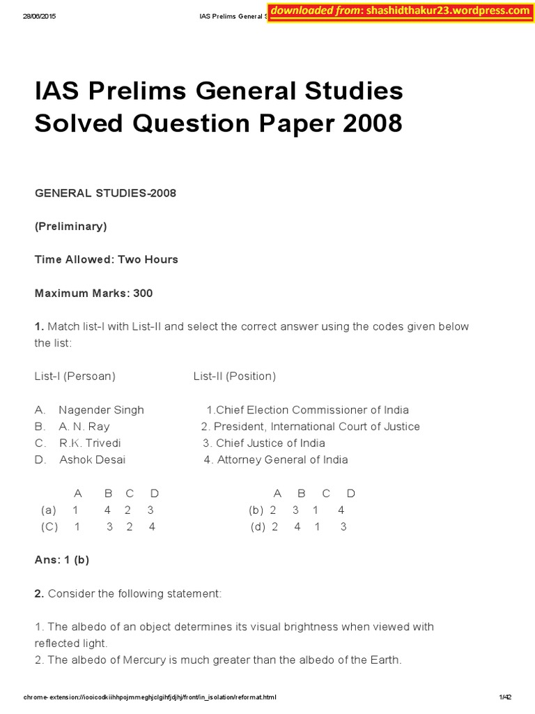 2008 Gs Prelims Paper Shashidthakur23 Wordpress Com Pdf Boron Light - Poslednie tvity ot shashi thakur (@shashidthakur_).